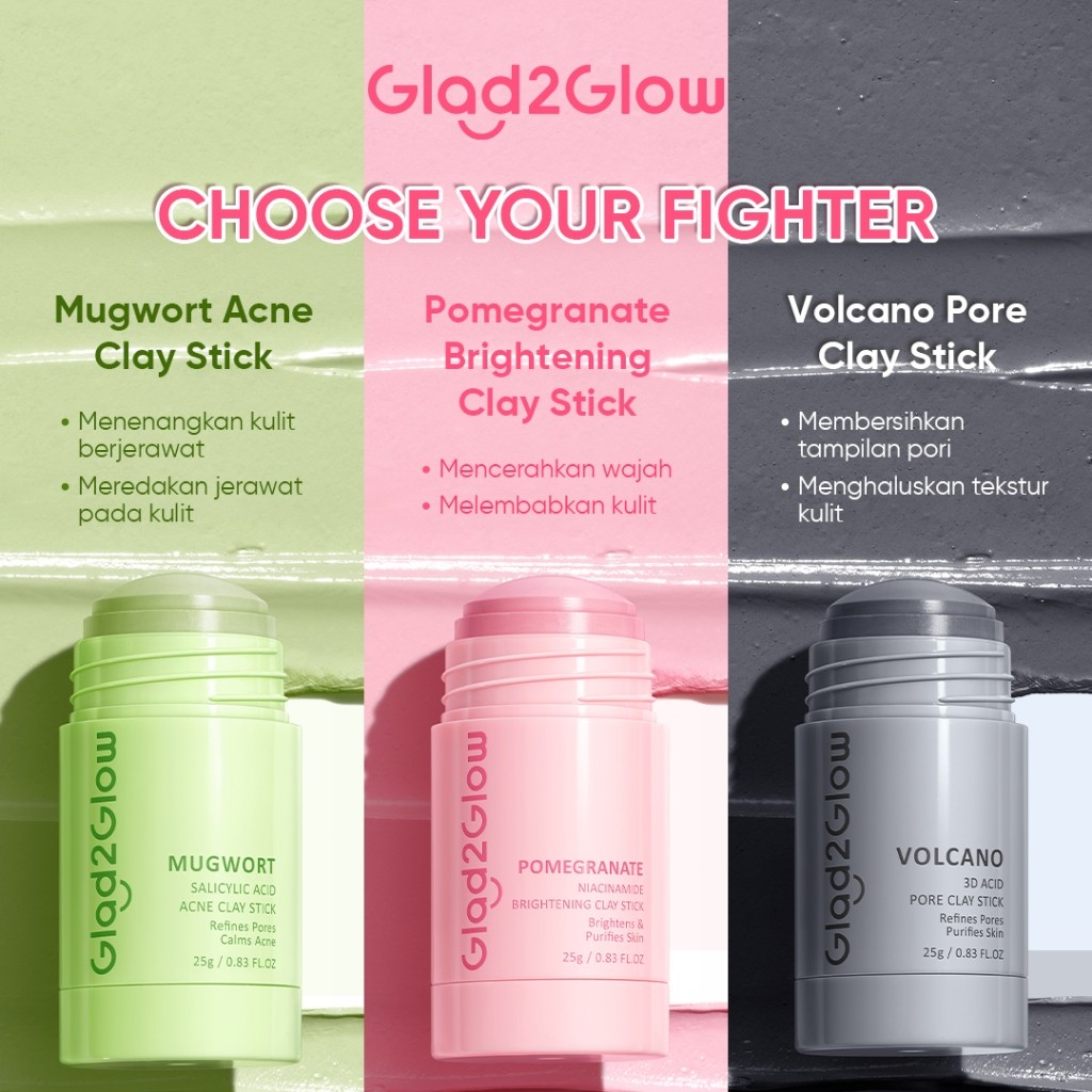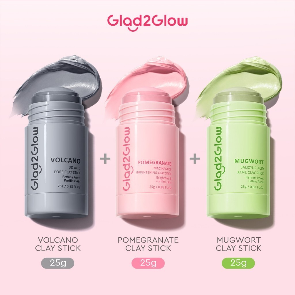 [100%ORI] Masker Glad2Glow All Series Niacinamide Brightening Clay Stick Cleansing Masker Wajah Masker Jerawat Masker Pencerah Wajah Mud Mask Brightening Masker Niacinamide Masker Stik Masker Stick Pink Masker Komedo Clay Mask Masker G2G Clay Masker T2