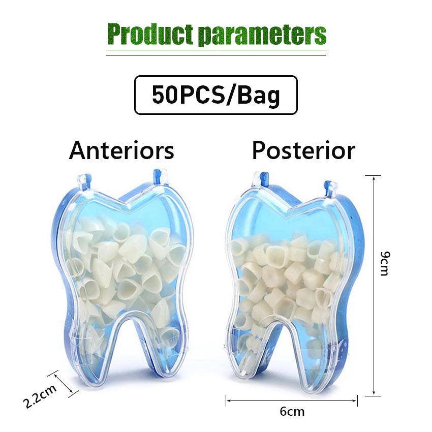 Gigi Palsu Penambal Ompong Temporary Crown gigi sarung gigi mahkota gigi jaket gigi Teeth Mahkota gigi 50 PCS Berisi kotak