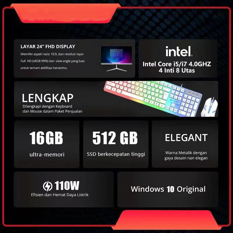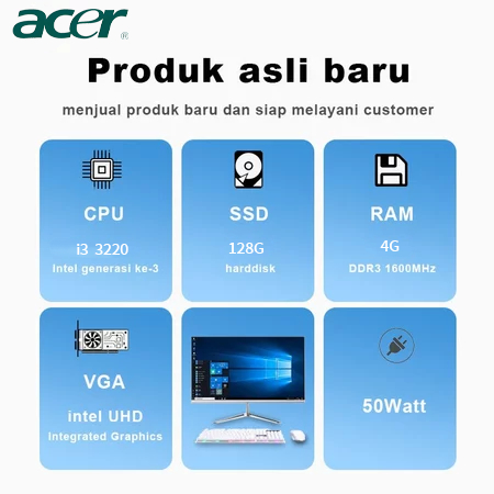 Acer Komputer Full PC All-in-One 19‘ 22’ 24‘ 27“ Baru Terbaru HD Super Tipis Intel Core i3/i5/i7 Untuk Rumah, Belajar, Kantor, Gaming dan