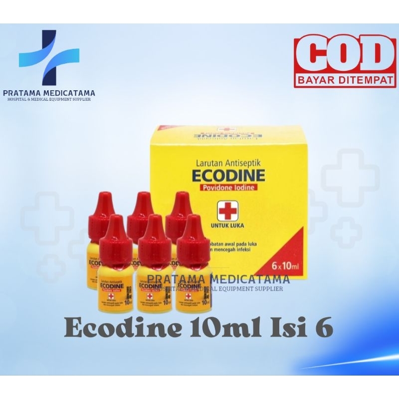 Ecodine Betadine 10ml Isi 6 botol Povidine Iodine 10% Cairan Antiseptic Untuk Luka