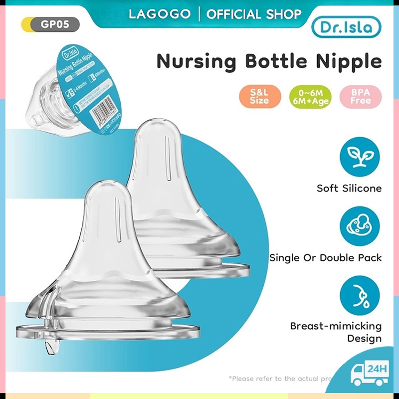 Dr.isla Dot Bayi Silikon 2 Pcs Mulut Lebar Anti-Kolik BPA Free Cocok untuk Usia 0 Bulan ke Atas GP05