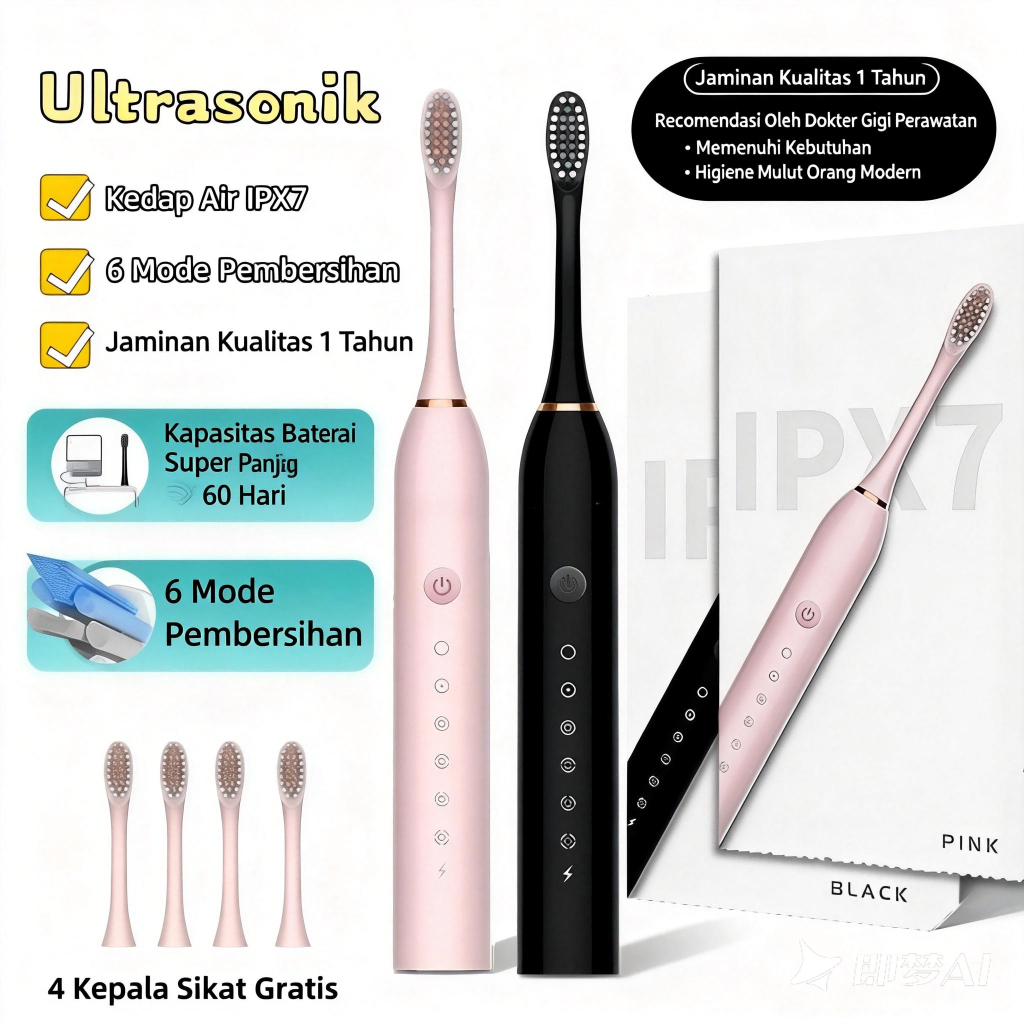 Sikat Gigi Elektrik Ultrasonic Vibration dan Anak Cocok Untuk Pengguna Behel dan Gigi Sensitif Electric Toothbrush Dewasa