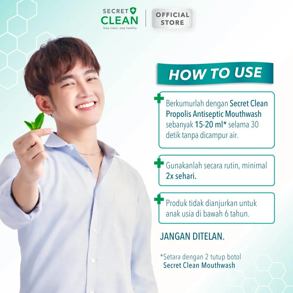 Secret Clean Propolis Antiseptic Mouthwash 300ml - Obat Kumur Karang Gigi