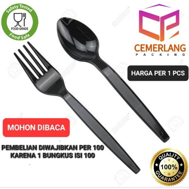 (HARGA PER PCS) SENDOK GARPU MAKAN HITAM PLASTIK TEBAL PANJANG FOOD GRADE