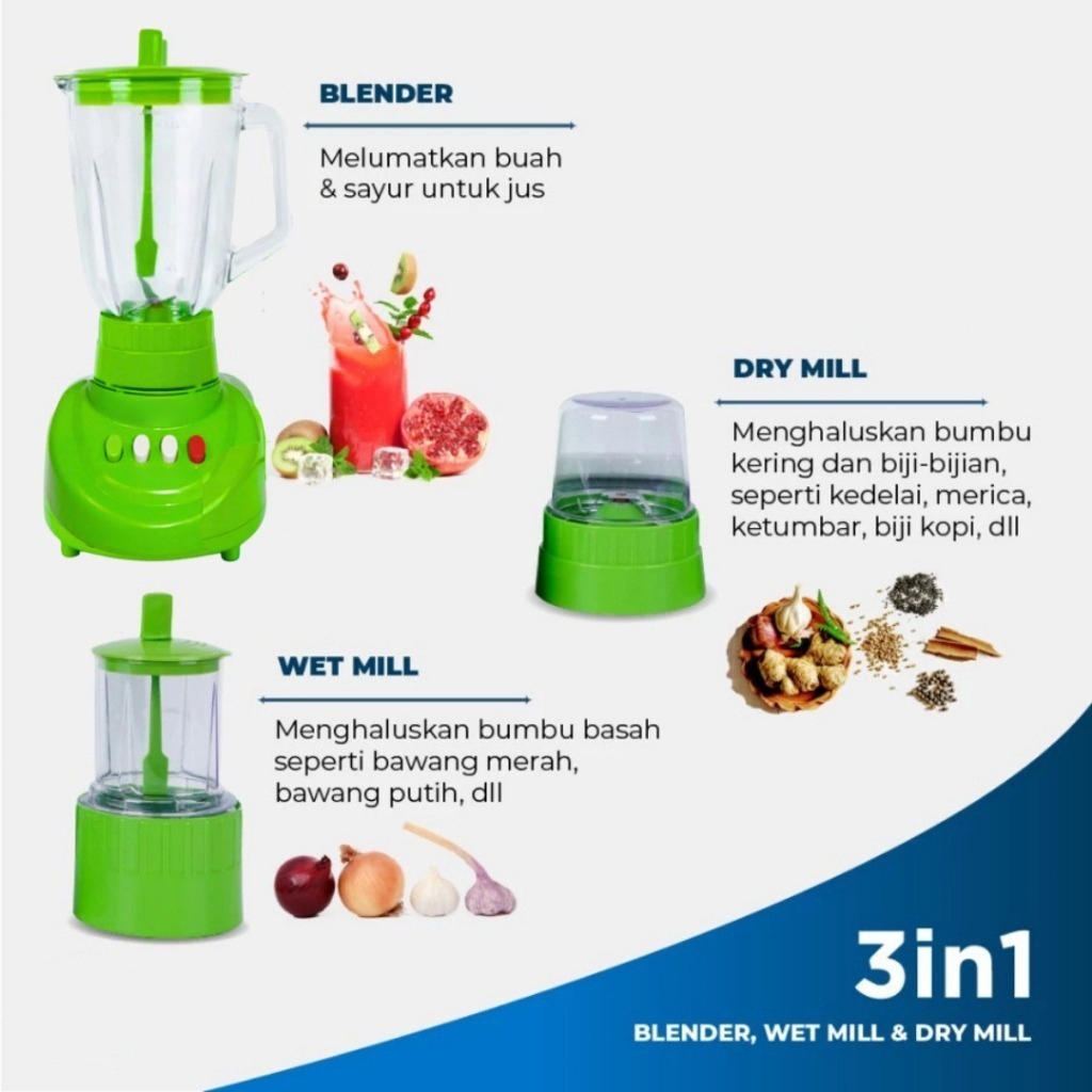 portable 4 IN 1 YASAKA 08L 2IN1 PLASTIK BLENDER /BLENDER FOODGRADE/blender PLASTIK TABUNG 1L 3 IN 1