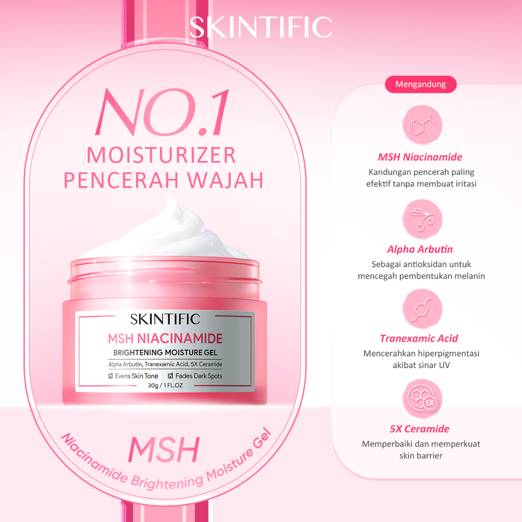 [SKINTIFIC CERTIFIED] MSH Niacinamide Brightening Moisturizer Gel 30g | Cream Pemutih Wajah Calming Whitening Dark Spot Pelembab Wajah Pemutih Wajah Facial Moisturizer Day Cream Night Cream Skincare BPOM Niacinamide Skincare Facial with MSH Niacinamide