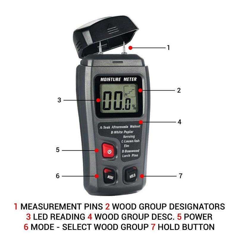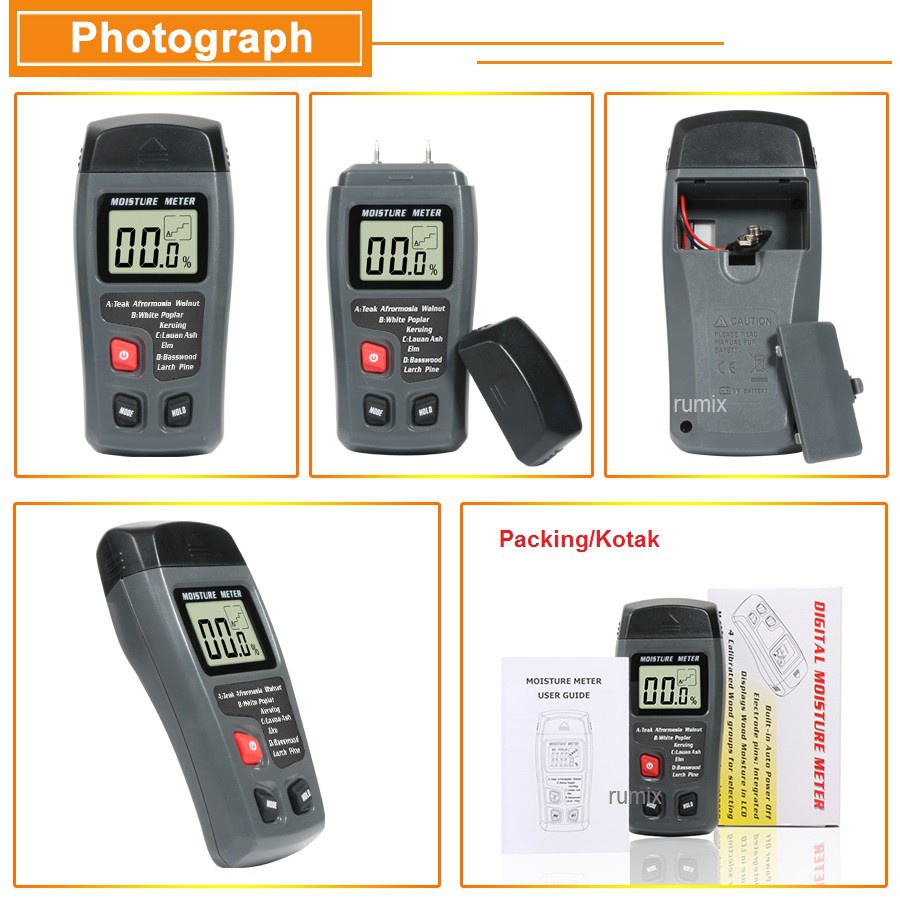 Wood Moisture Meter Kayu Kertas Pengukur Kadar Air Paper LCD Display Alat Ukur Kayu Digital MT10