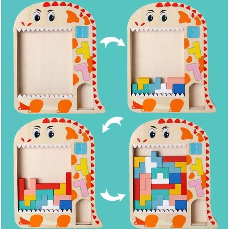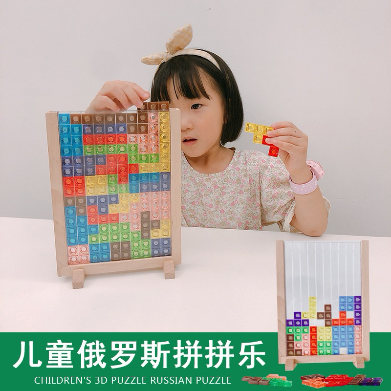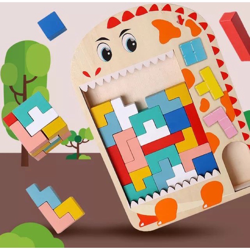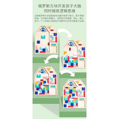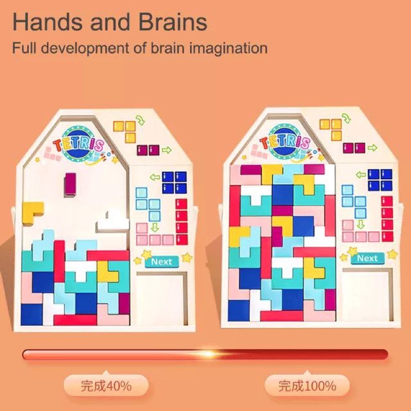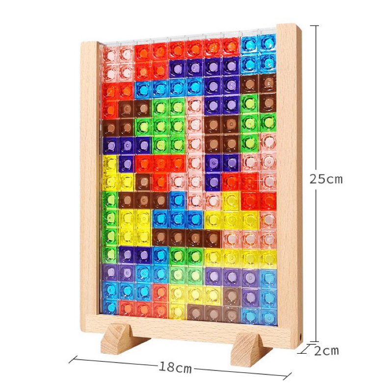 Wooden Tetris Building Puzzle 3D Blocks Mainan Tetris Family Board Game Multifunction Tetris