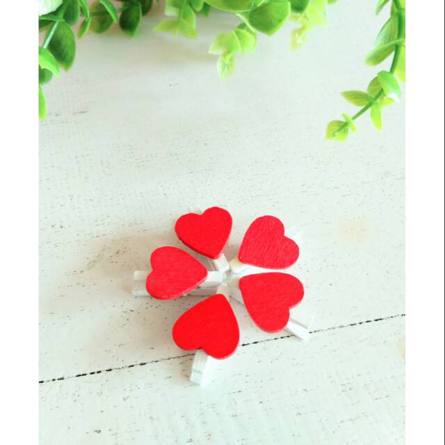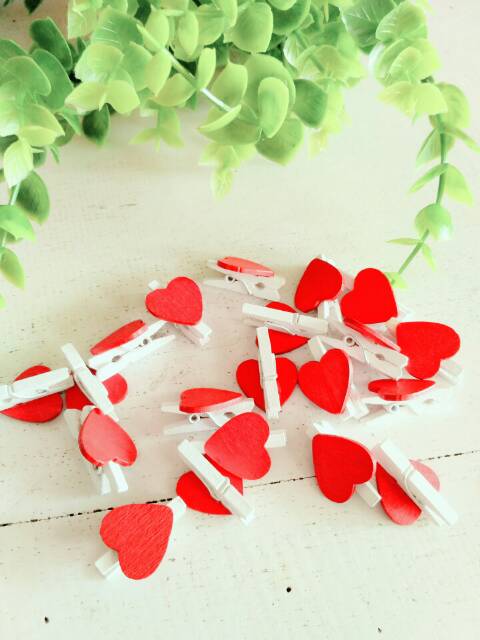 Wooden clip klip hati merah / penjepit kertas / klip kayu clip kayu
