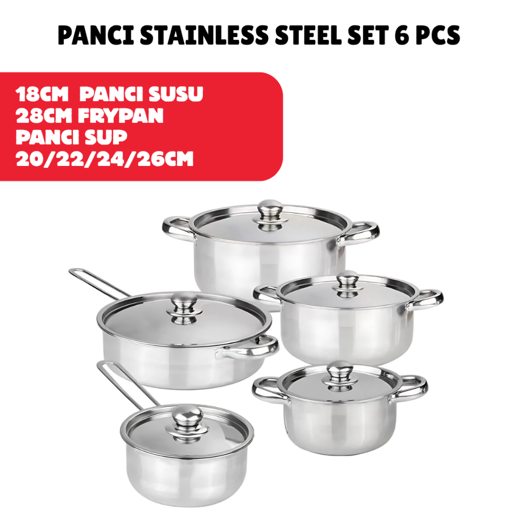 Royalstar Panci Full Stainless Steel 1 Set 6 pcs Anti Karat Tebal | Peralatan Dapur Set Lengkap