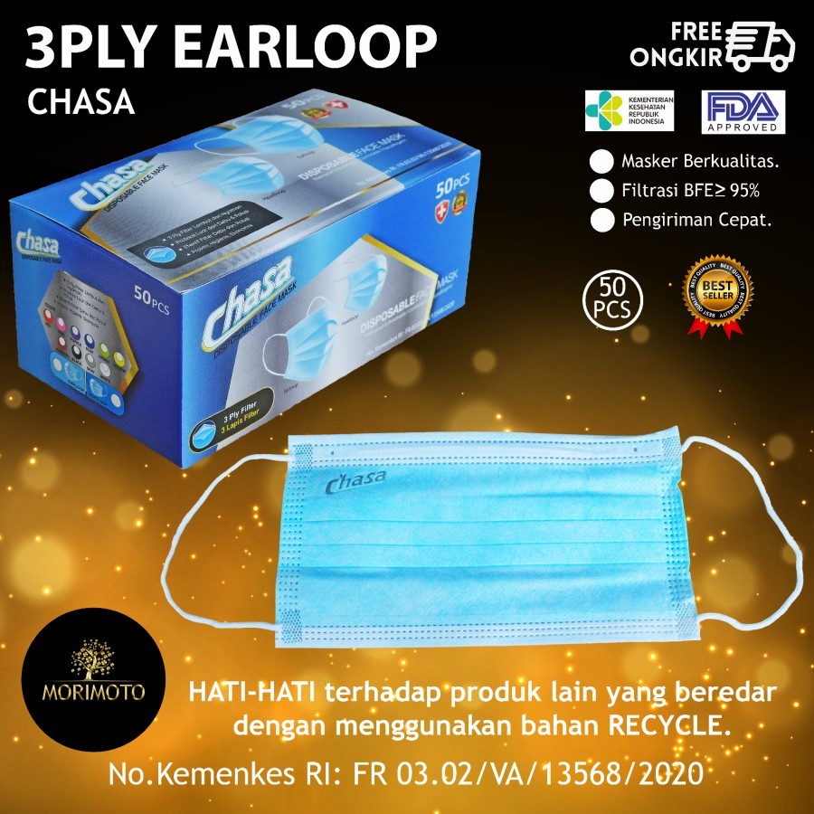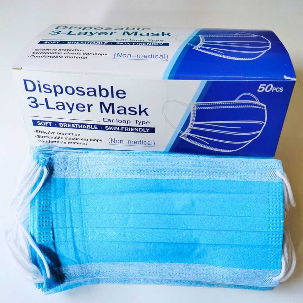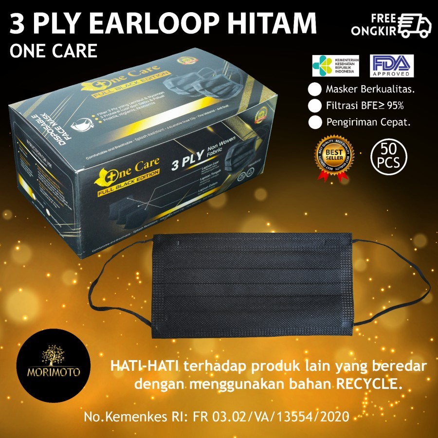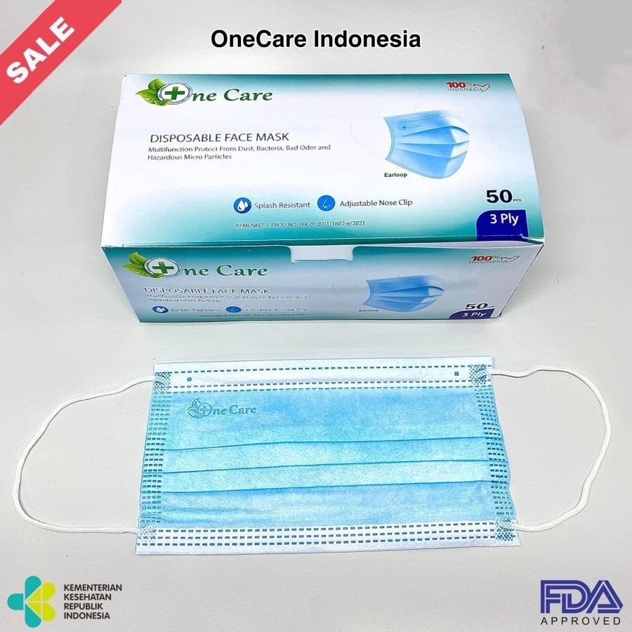 MASKER ONE CARE 3PLY EARLOOP BIRU ADA EMBOSS ISI 50PCS PASTI ORIGINAL