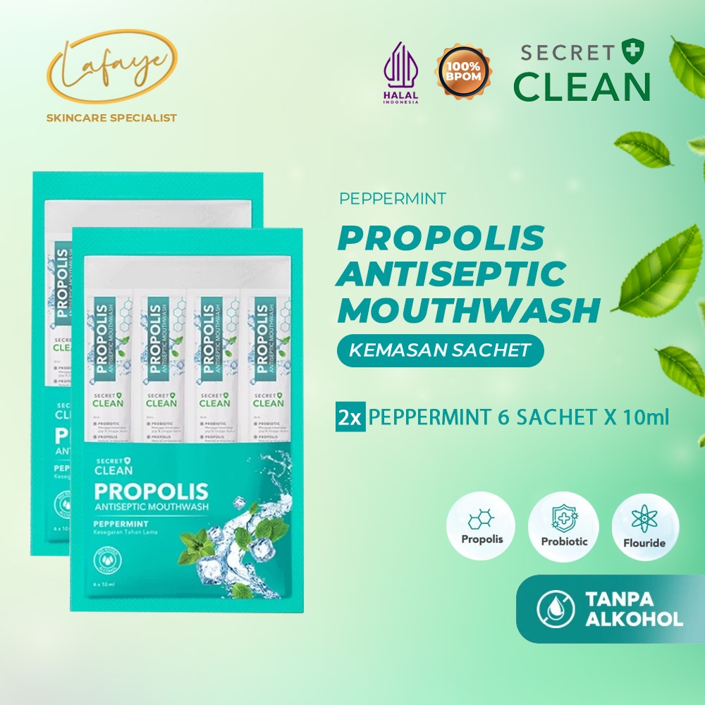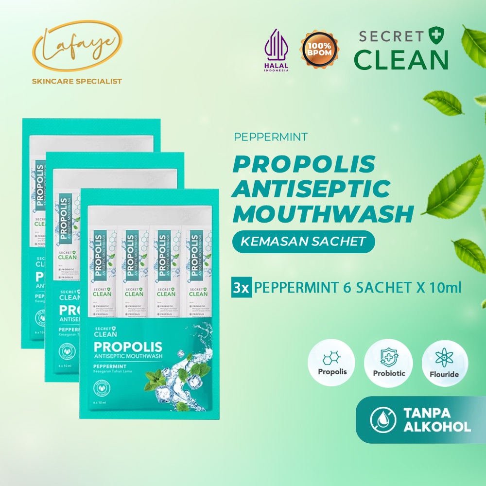 Obat Kumur Mulut Secret Clean Propolis Mouthwash Sachet Peppermint 10ml x 6 sachet Sodium Fluoride