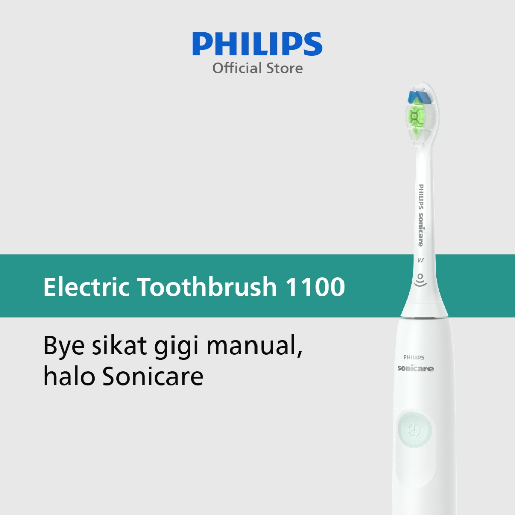 Philips | Electric Toothbrush 1100 | Sikat Gigi Electric | Plak 3x Lebih Bersih dari Sikat Gigi Manual | Putih | HX3641/41