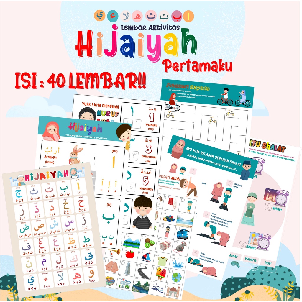 Worksheet Belajar Menulis Hijaiyah - 40 LEMBAR - Lembar Kerja Anak Tracing Huruf Hijaiyah - Aktivitas PAUD Muslim - Mainan edukasi