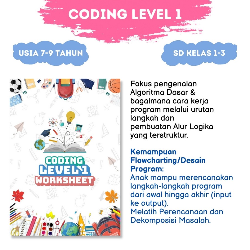 Worksheet Coding Anak Kertas Aktivitas Belajar Logika Usia PAUD TK SD Coding Activities for Kids 50 Lembar HVS A5