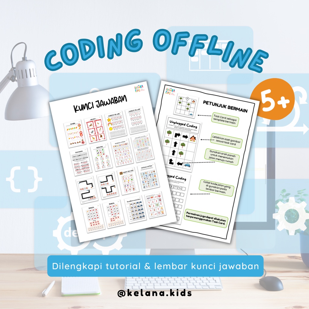 Printable Worksheet Coding Offline for Kids 30+ Lembar Buku Belajar Kognitif Anak 5, 6, 7 Tahun PDF