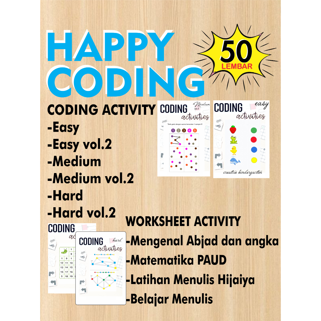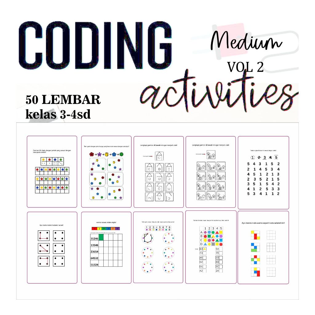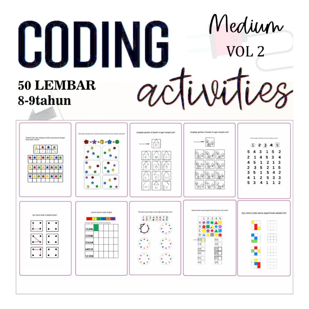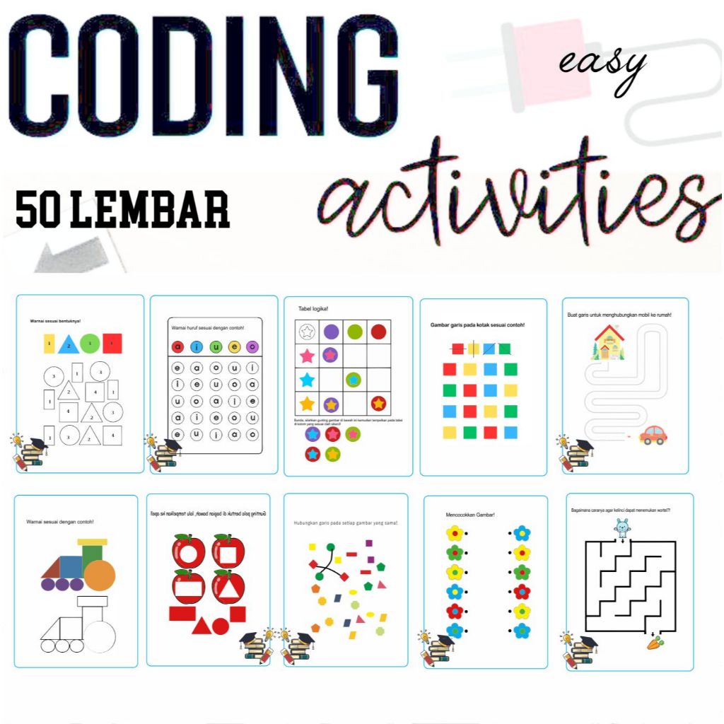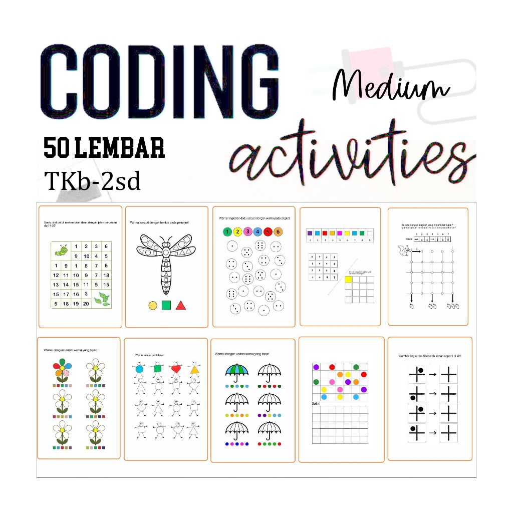 Worksheet Coding TK-SD / Coding Untuk Anak isi 50 Lembar ukuran A5