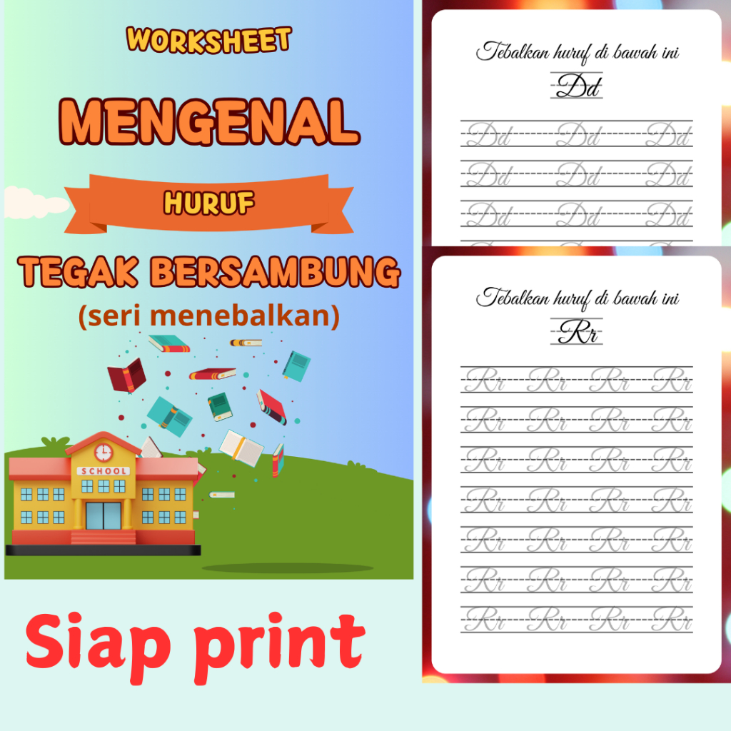 Worksheet Mengenal Huruf Tegak Bersambung (seri menebalkan) l Worksheet Belajar Huruf Tegak Bersambung l Worksheet Belajar Menulis l Worksheet Anak PAUD & TK l Lembar Kerja Aktivitas Anak