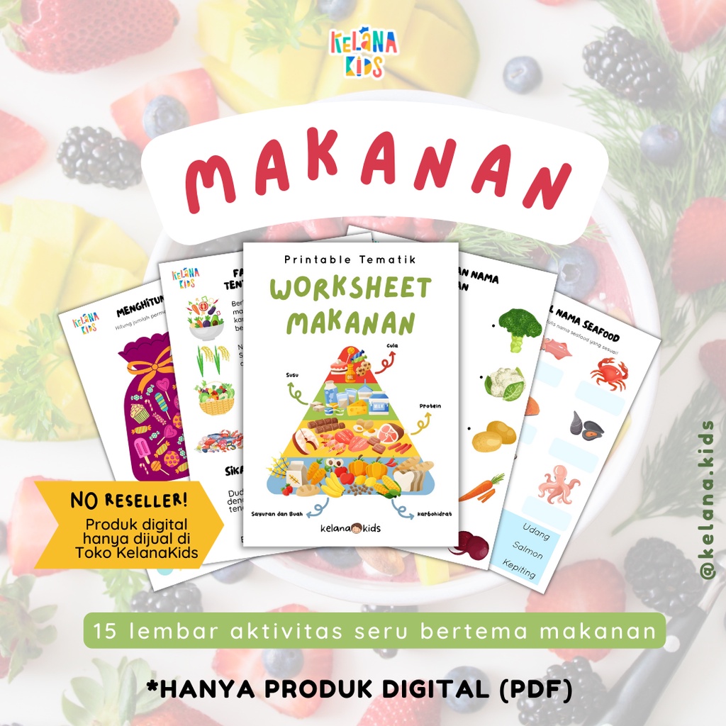 Printable Worksheet Tematik Tema Makanan - 15 Lembar Kerja Buku Belajar Aktivitas Anak TK PAUD PDF
