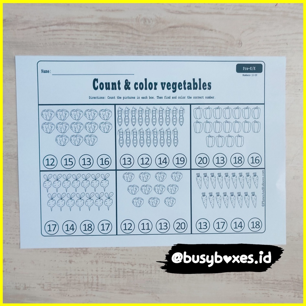 Worksheet paud / worksheet preschool / worksheet berhitung / worksheet mewarnai