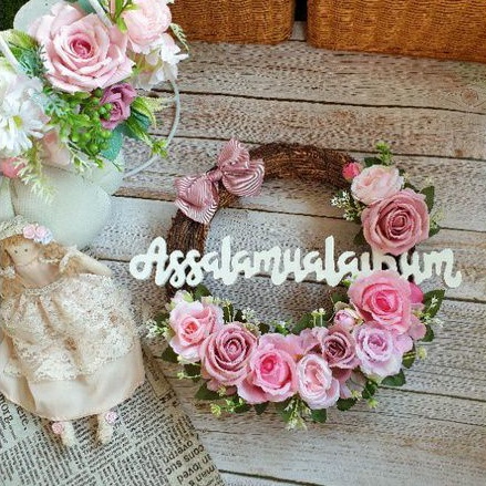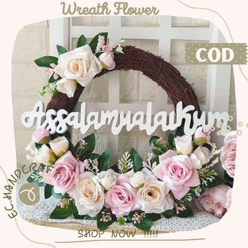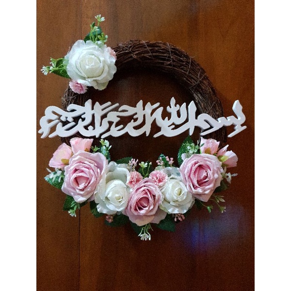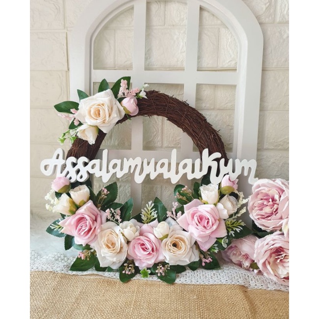 Wreath Flower Akar Tulisan Salam Gantungan Hiasan Dinding Pintu Ruang Tamu Keluarga Kamar Tidur Homdecor Lingkaran Ring Melingkar Hias Kekinian Modern Klasik Classic