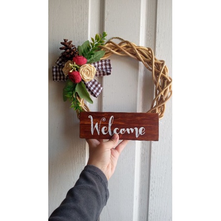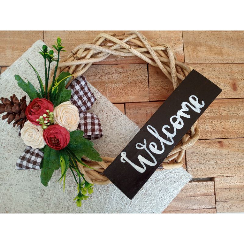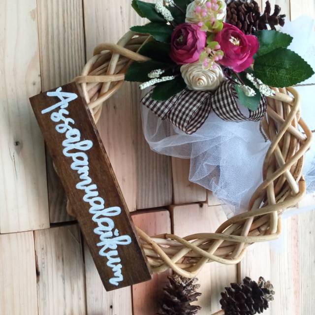 Wreath Flower Pintu/Wreath rotan/ Hiasan dinding/Wreath bunga/ Hiasan rumah