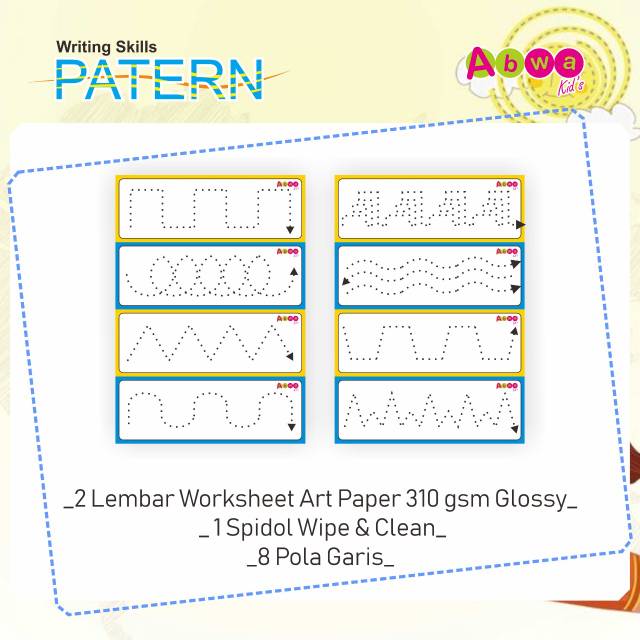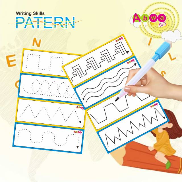 Writing Skills Patern Belajar Menulis Pola Garis dengan Spidol Wipe and Clean Abwakids