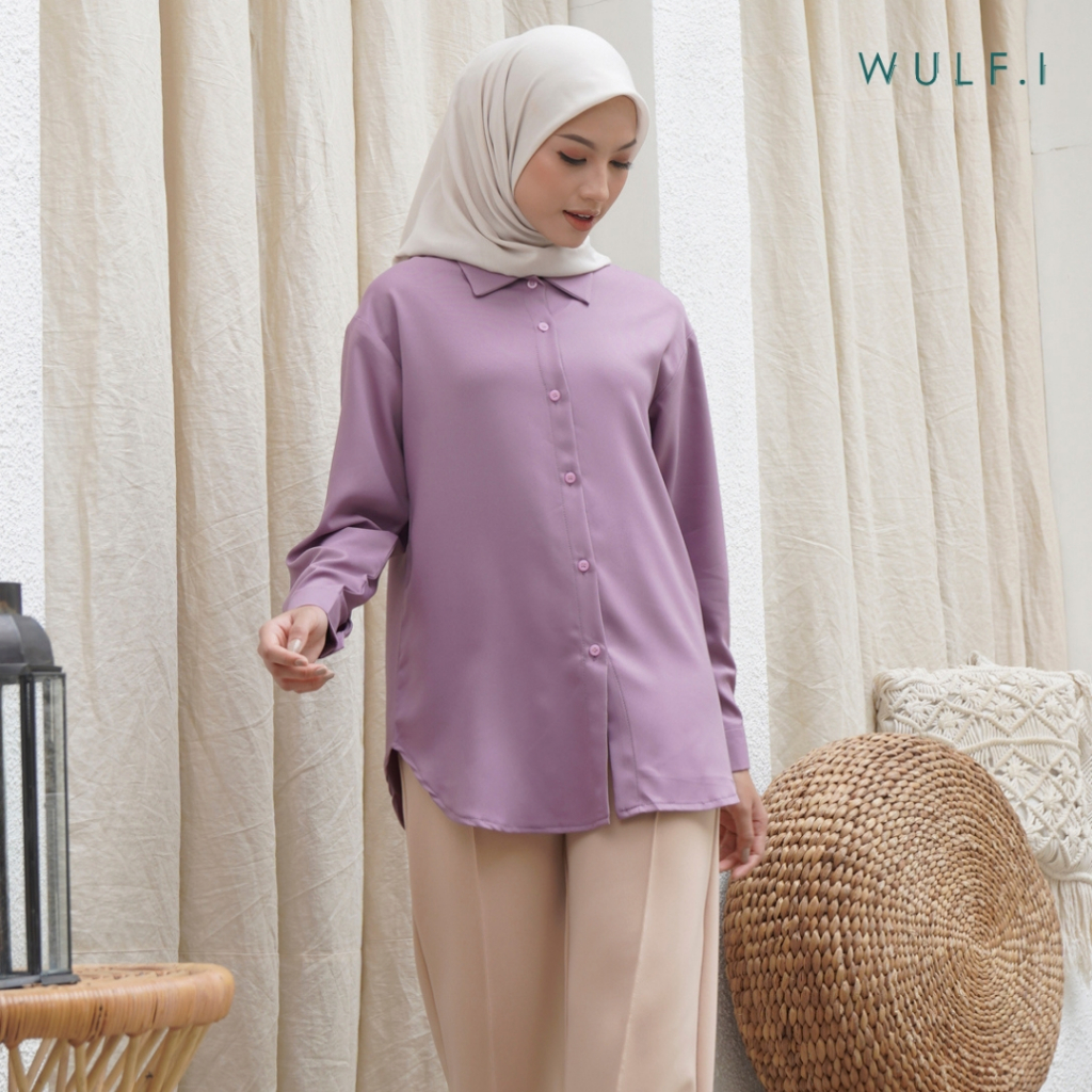 Wulfi Atasan Kemeja Kerah Jatuh Kemeja Kasual Kerja Kantor Lengan Panjang Kemeja Lengan Panjang