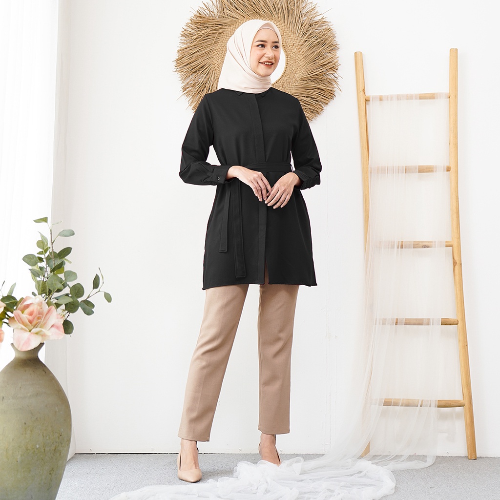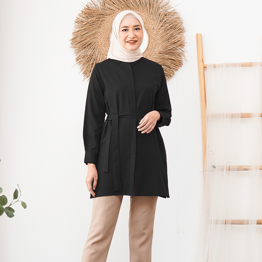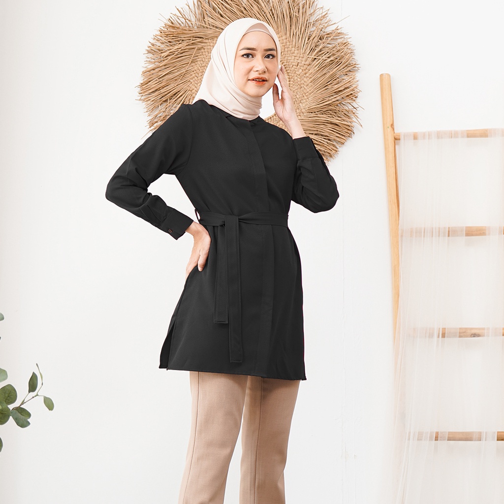 Wulfi Atasan Kemeja Hitam Tunik Adem Black