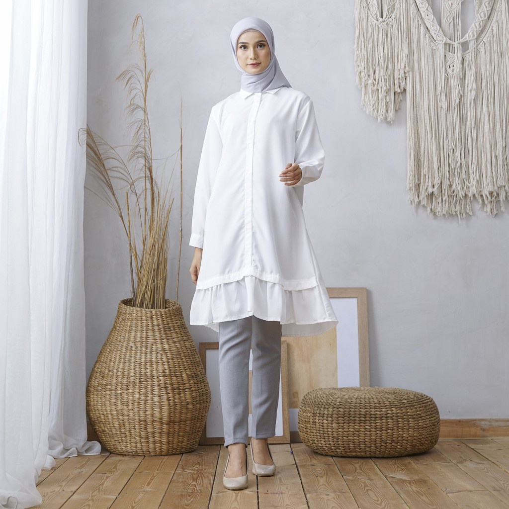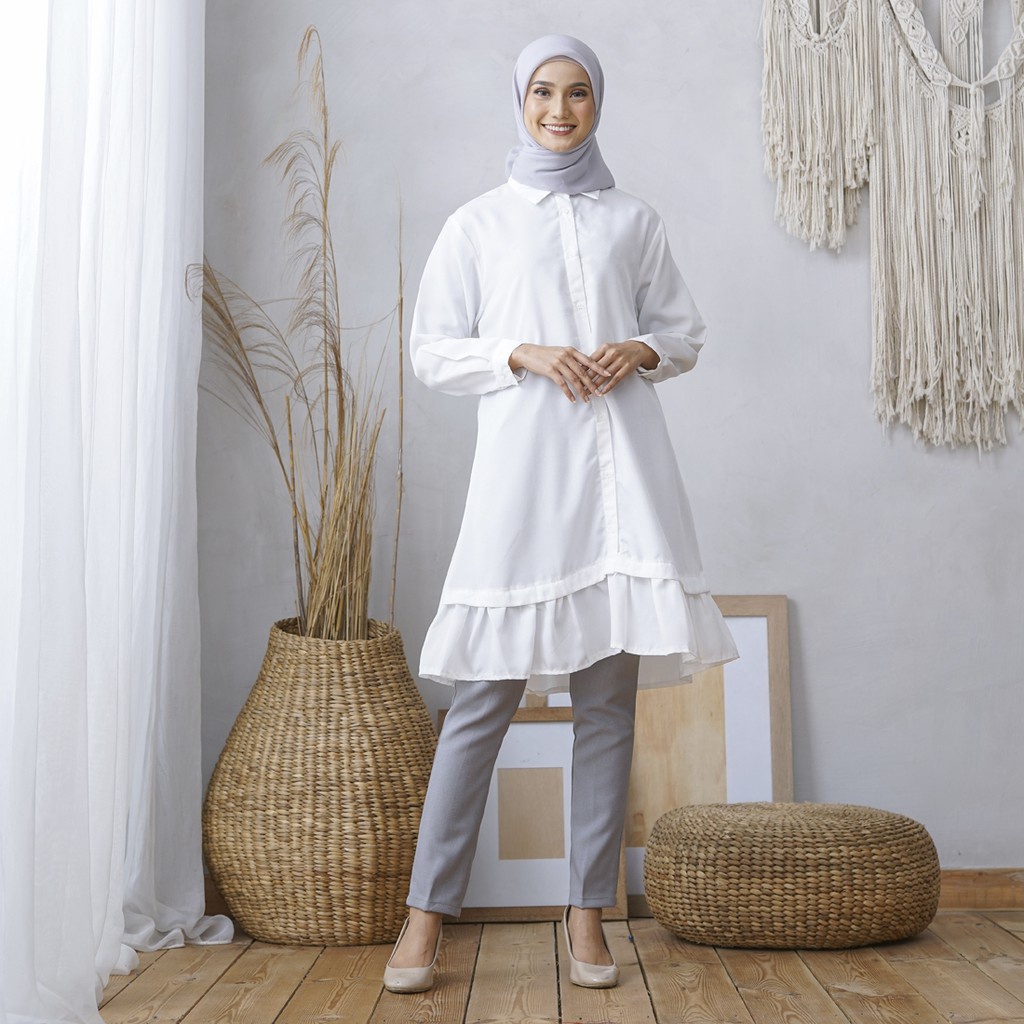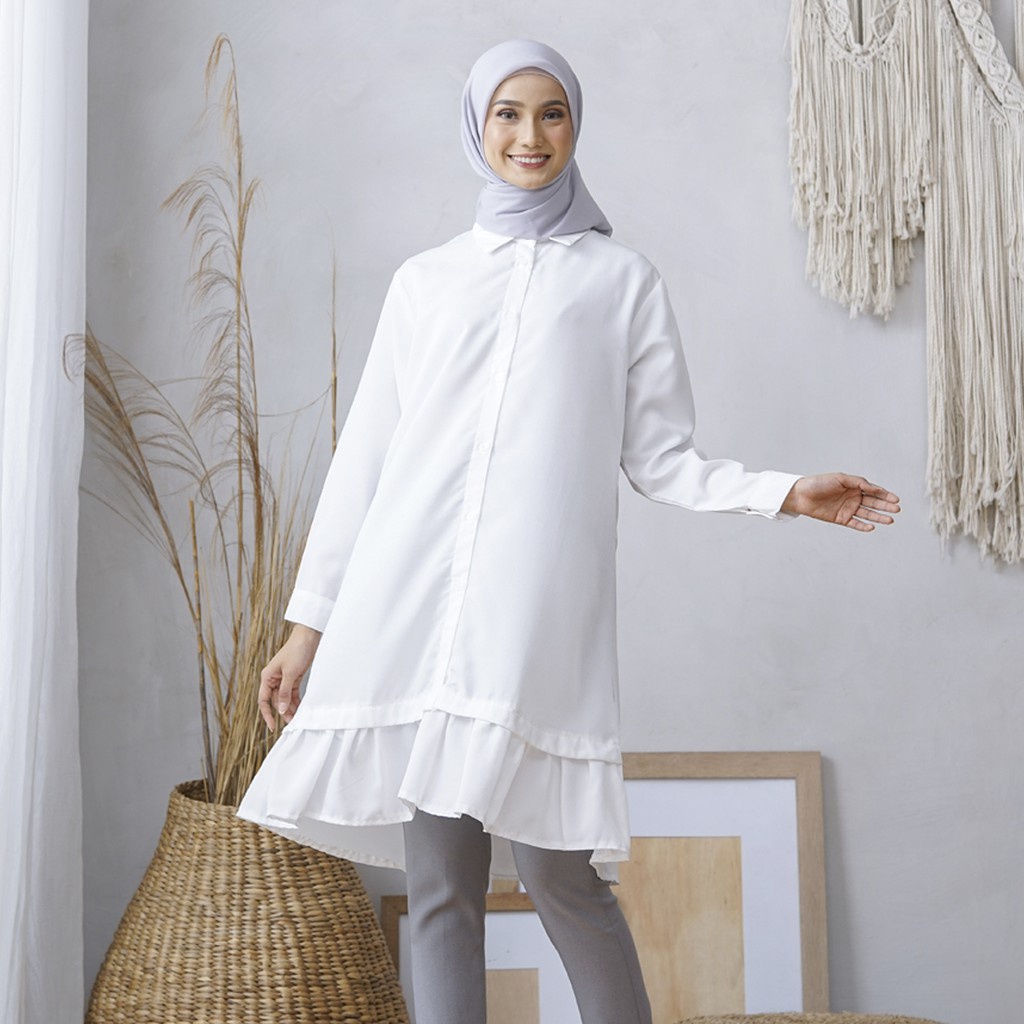 Wulfi Atasan Kemeja Putih Tunik Essential White
