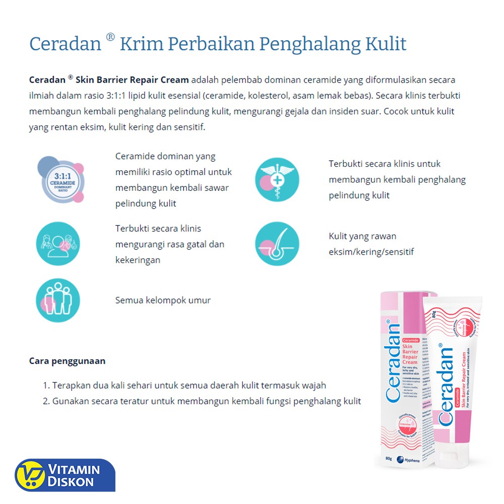 Ceradan Ceramide Dominant Skin Barrier Repair Cream 30 Gr | Krim Pelembab Pereda Iritasi Pada Kulit