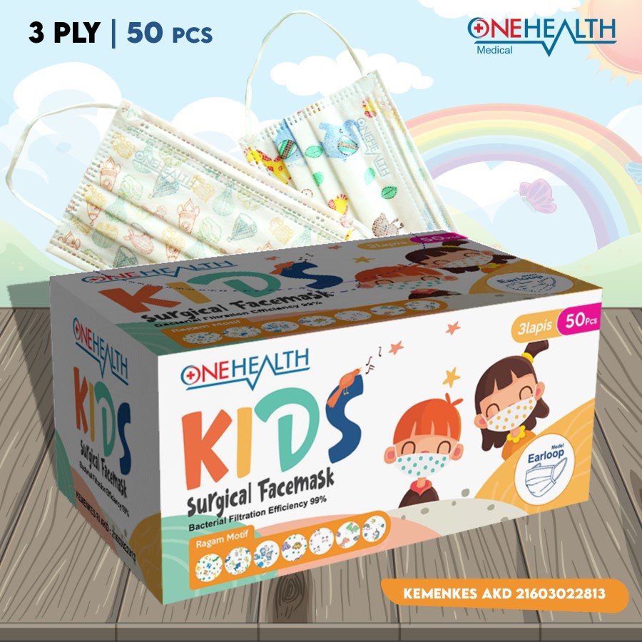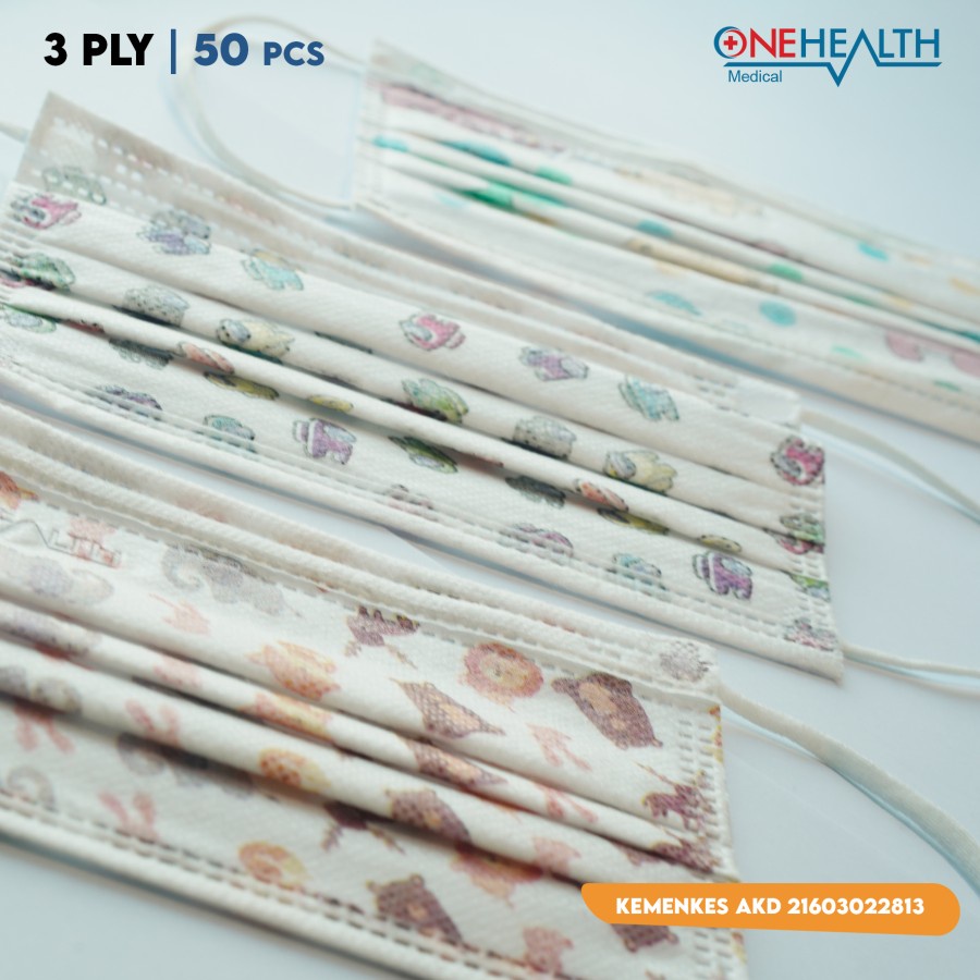 Onehealth Masker medis Motif Anak Earloop 3-Ply Melindungi Hidung Mulut Dari Kotoran Isi 50 Pcs