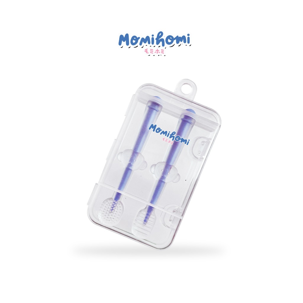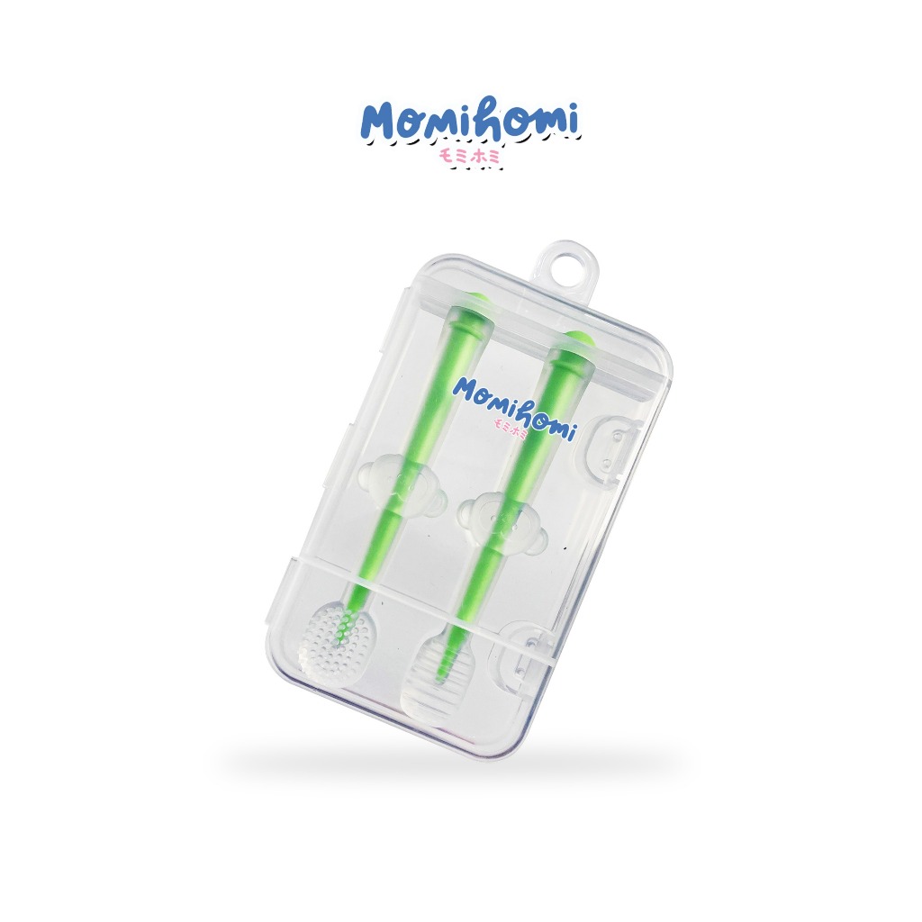 (SILIKON ANTIBACTERIAL) MOMI HOMI AUTHORIZED Baby Oral Care Pembersih Mulut 3066 Bayi Silikon Set Sikat Lidah Bayi & Sikat Gigi Bayi 2in1 Silicone Tootbrush