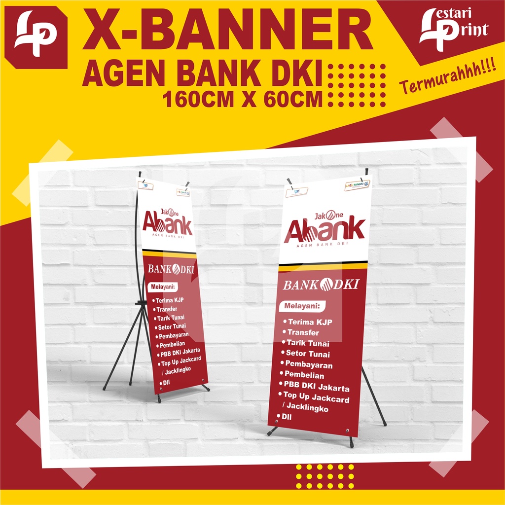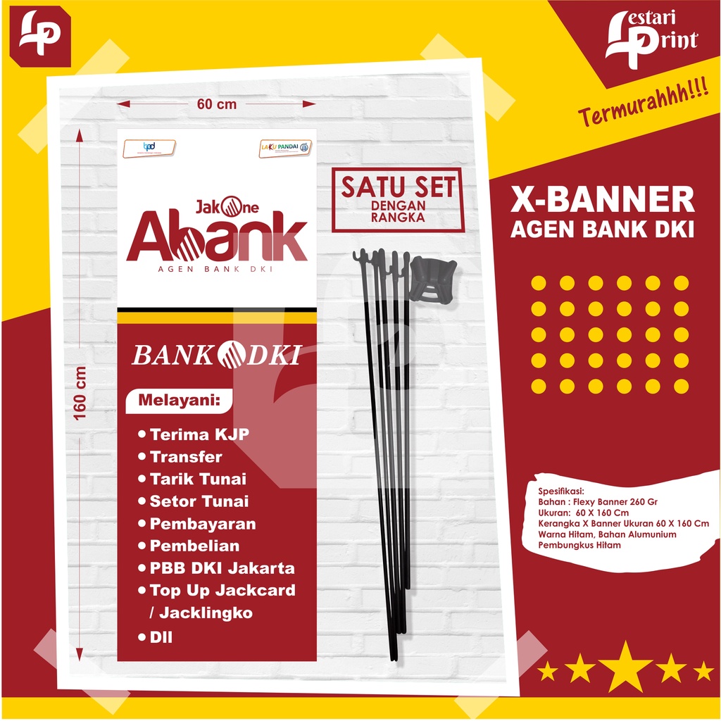 X BANNER AGEN BANK DKI SATU SET DENGAN RANGKA X BANNER 160CM X 60CM / BANNER DKI / BANNER BANK DKI/ SPANDUK AGEN BANK DKI / X BANNER CUSTOM / LESTARI PRINT