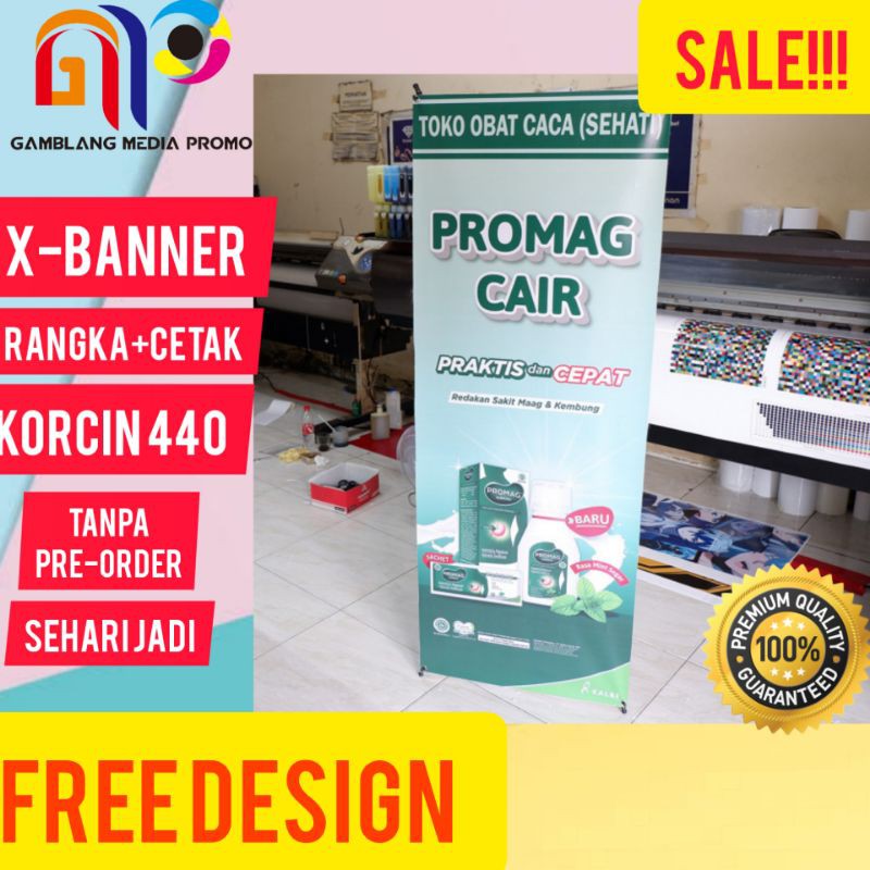 X-Banner 60x160 Cetak Plus Rangka Bahan Korcin 440