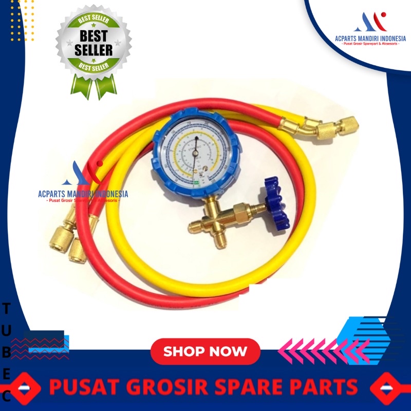 Testing manifold single R22 / R134 / R407 / R404 include selang ( manifold single non siglass )