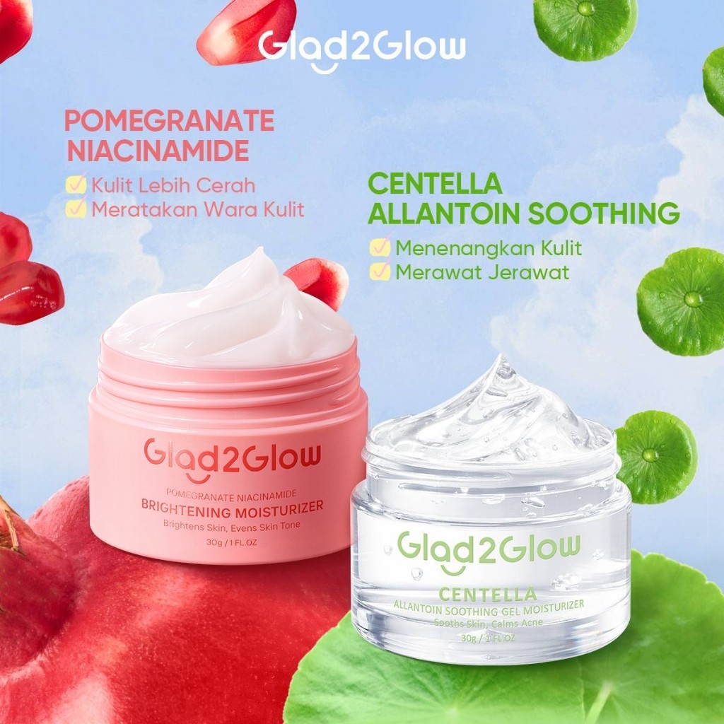 Glad2Glow Centella Moisturizer Gel Repair Skin Barrier 55g/30g Blueberry Ceramide Moisturizer Pomegranate Niacinamide Brightening Moisturizer Yuja Symwhite 377 Dark Spot MoisturizerOil-Control Hydrating Moisturizer Cream - Pelembab Wajah