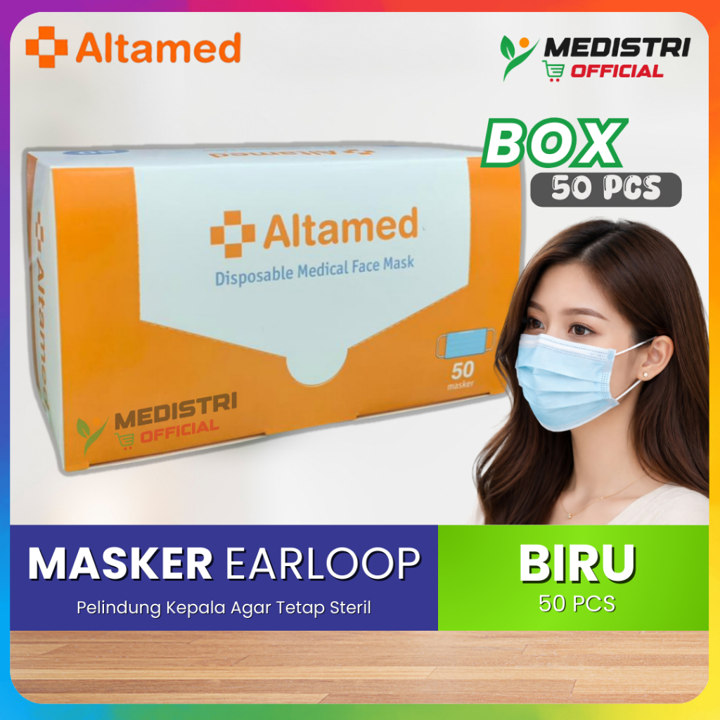 Masker Earloop 3 Ply Medis Box 50 Pcs Pria Wanita Altamed Biru Hijau Grosir