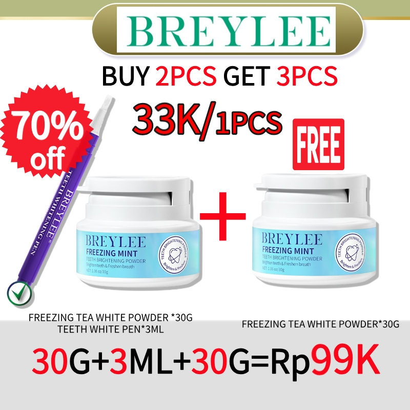 【BPOM】BREYLEE Teeth Whitening Powder 30gr/55gr - Pemutih Gigi - Peach, Freezing Mint, Lime, Green Tea