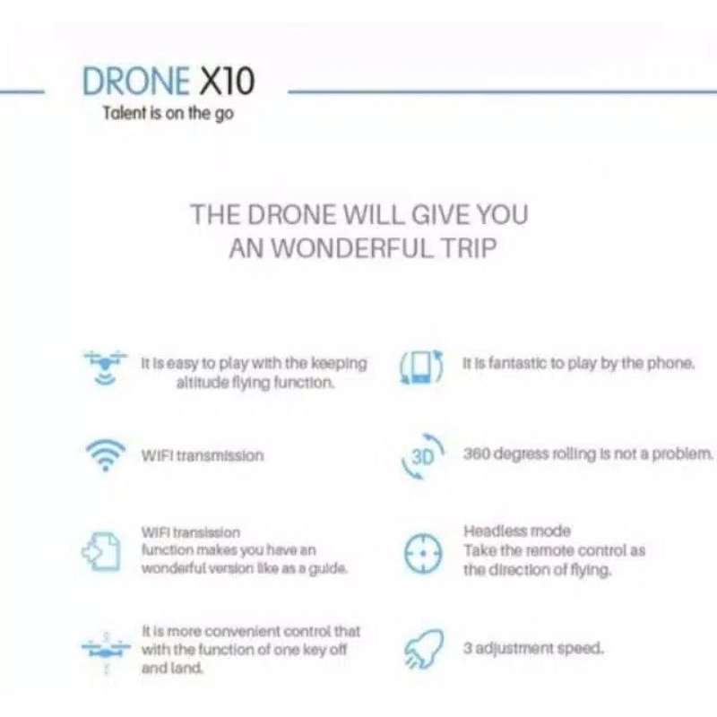 X10 Aerial Photography RC Drone Wifi w HD 30w Pixel Cam 4-Axis Gyro One Key Return Drone Toy