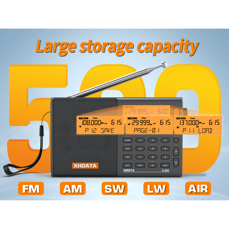 XHDATA D-808 Multiband Radio Receiver AM FM SW MW AIR SSB RDS Portable Digital Radio with ATS Hi-Fi Stereo Rechargeable Battery
