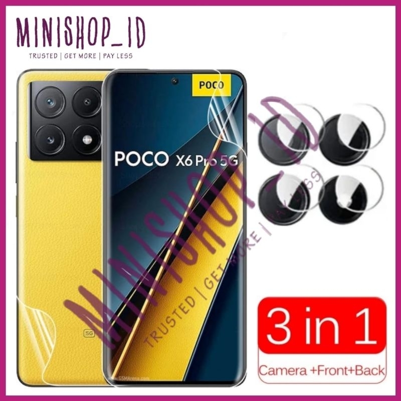 XIAOMI POCO X6 PRO 5G HYDROGEL FRONT BACK SCREEN CAMERA PROTECTOR ANTI GORES BENING CLEAR MATTE GLOSSY BLUE LIGHT SPY 3IN1 FULL COVER BODY 3 IN 1 X6PRO