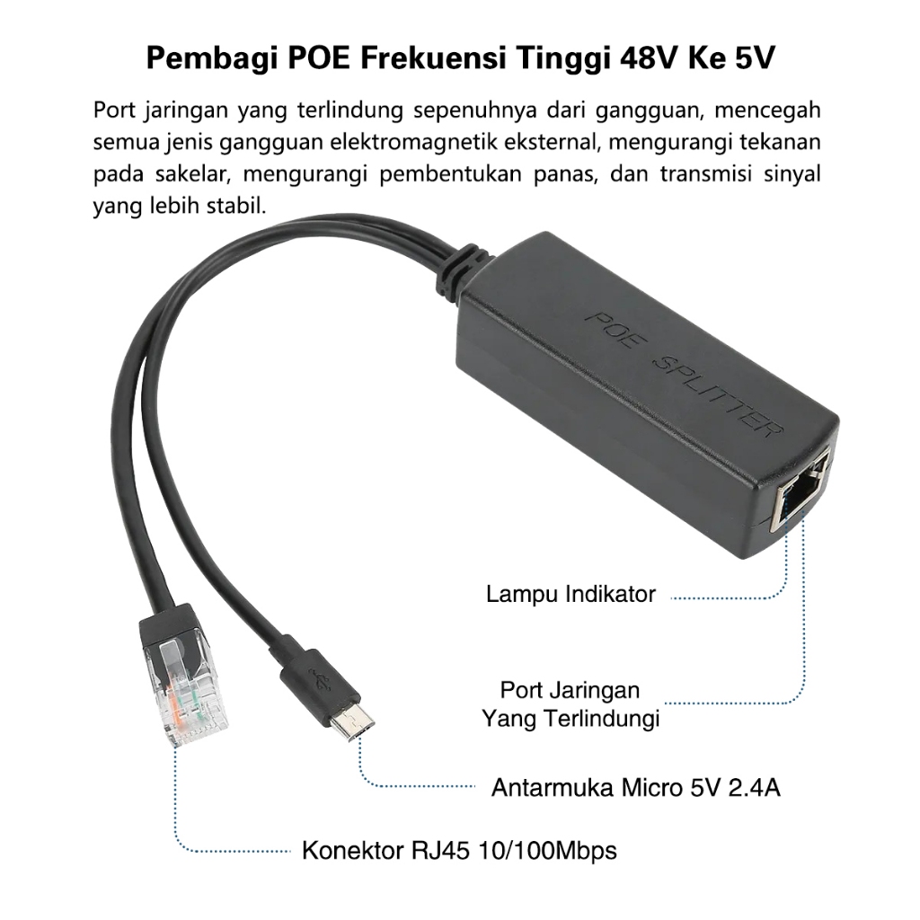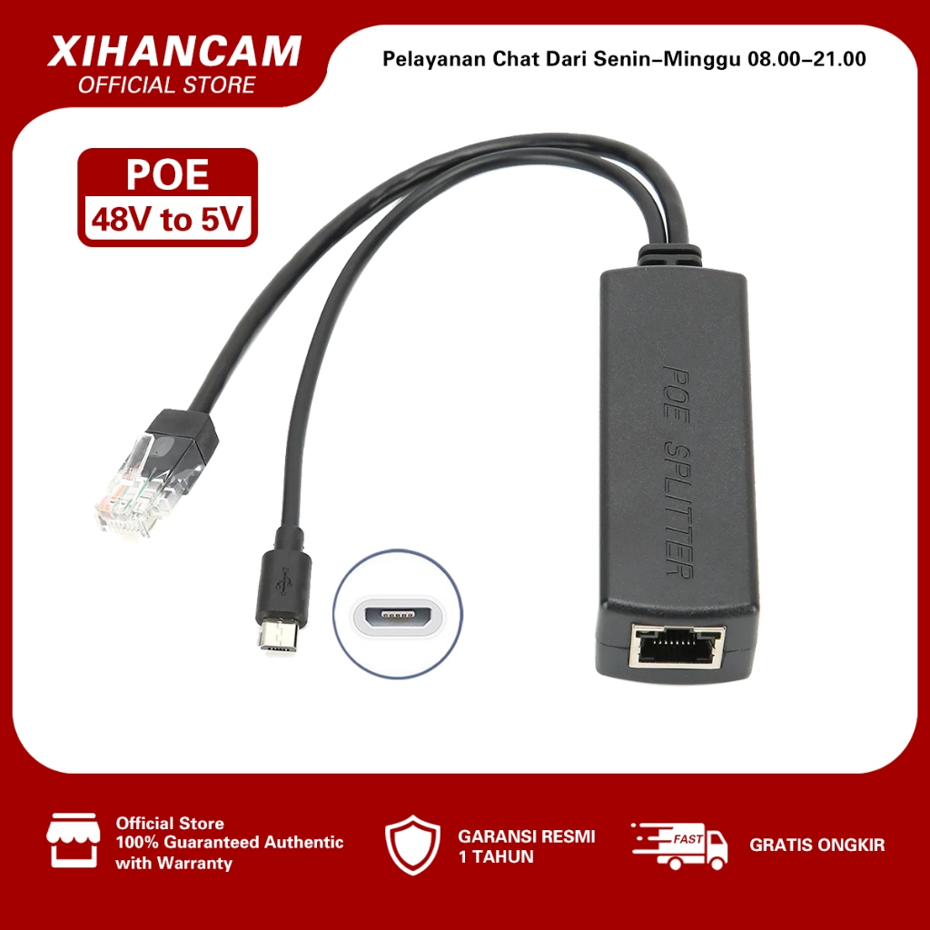 XIHANCAM POE Splitter Micro USB 48V To 5V Kabel POE Injector Konektor POE Splitter Adaptor Power 5V