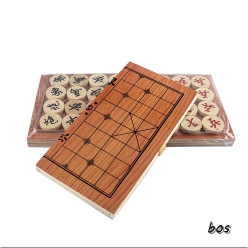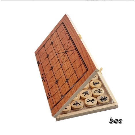 Xiangqi Set Catur Cina dengan Papan Lipat warna coklat kayu