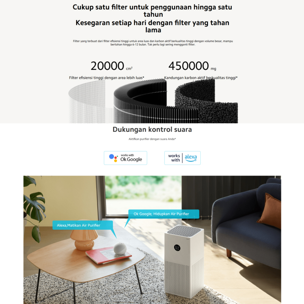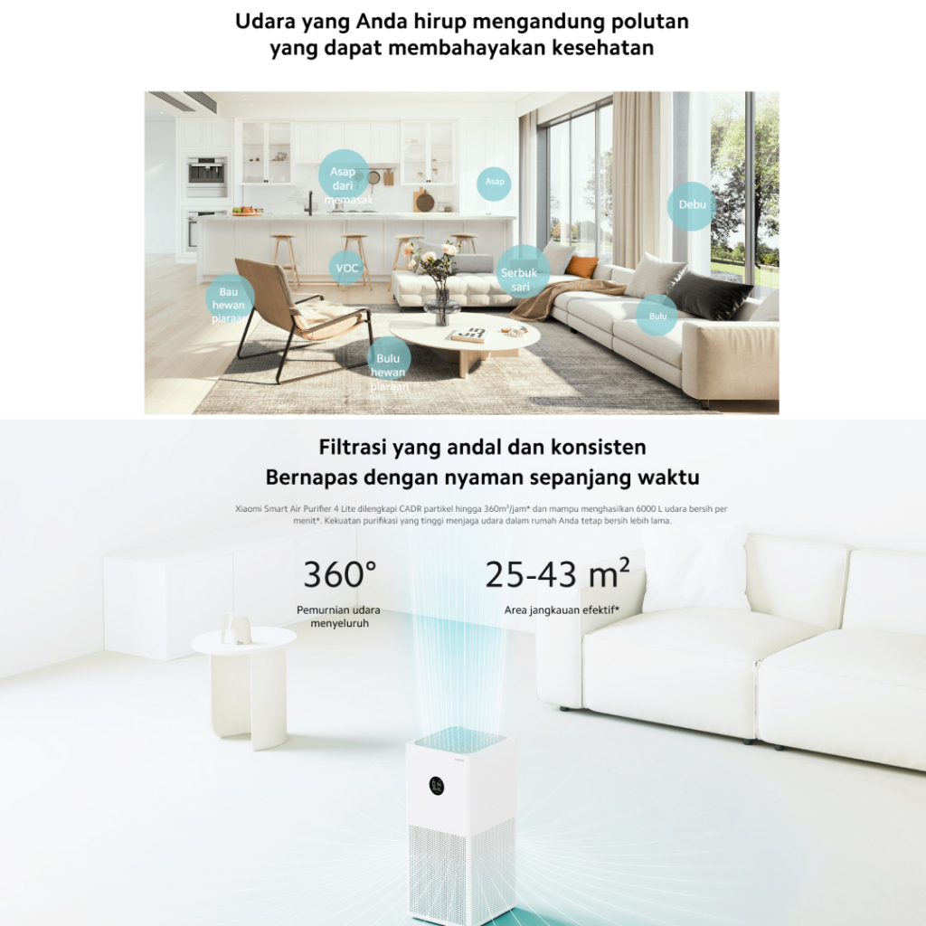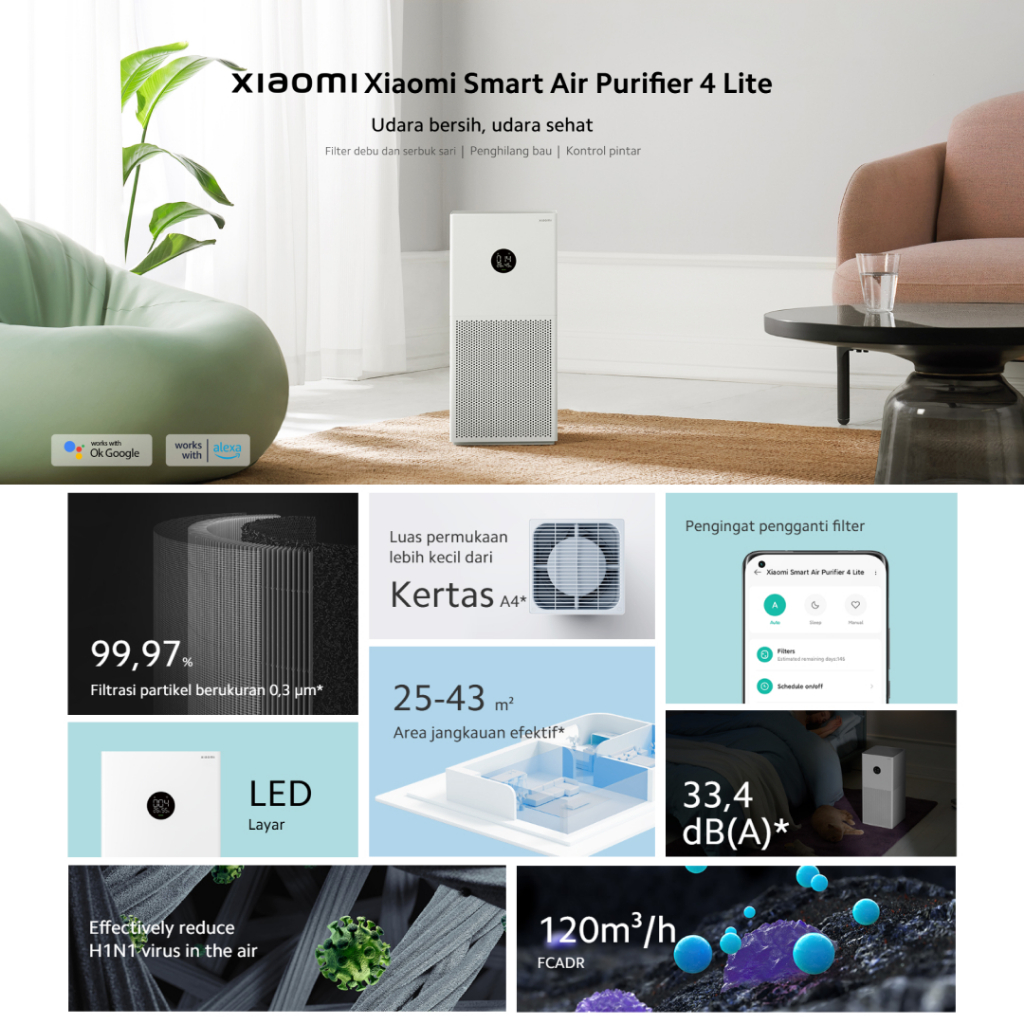 Xiaomi Smart Air Purifier 4 Lite | Area Jangkauan 43m2 | Suara Bising 33,4db | Support Ok Google