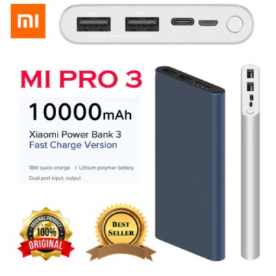 Xiaomi Powerbank Original MI PRO 3 10000mAh 18W Power Bank Fast Charge