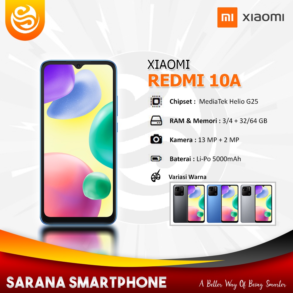 Xiaomi Redmi 10A RAM 3/32 3/64 4/64 GB Handphone Smartphone Android Garansi Resmi BINB Gratis Ongkir Cashback Bonus