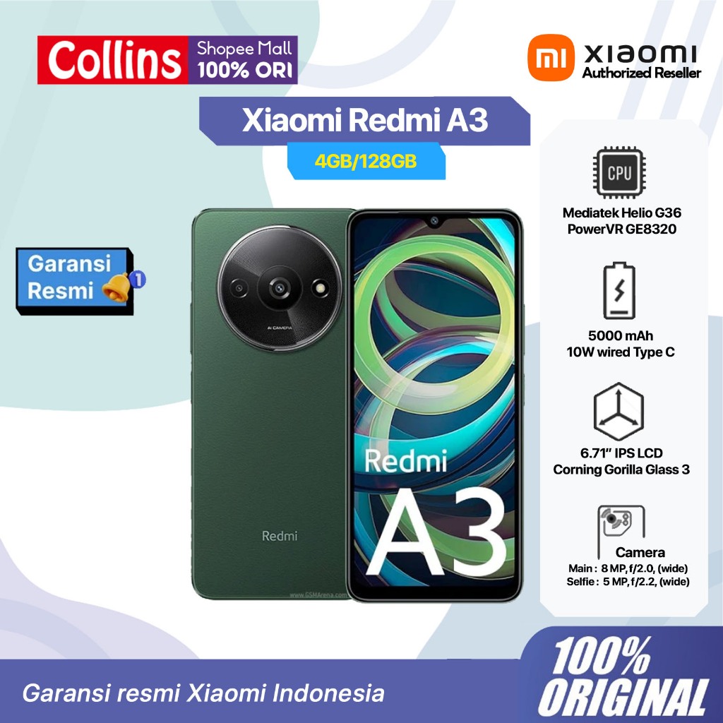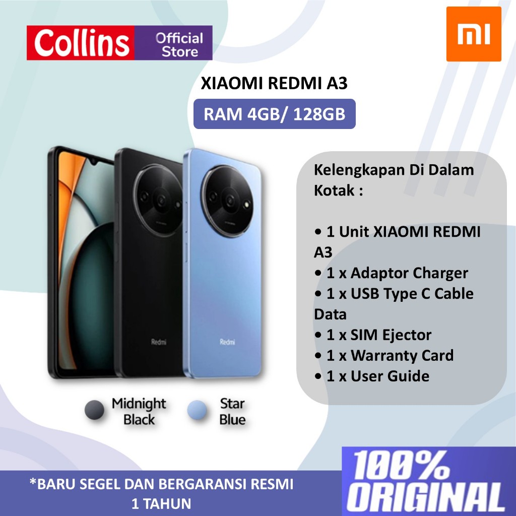 Xiaomi Redmi A3 (4GB/128GB) | Layar Muluz 90 Hz | Sensor Sidik Jari & Face Unlock | Desain Inovatif
