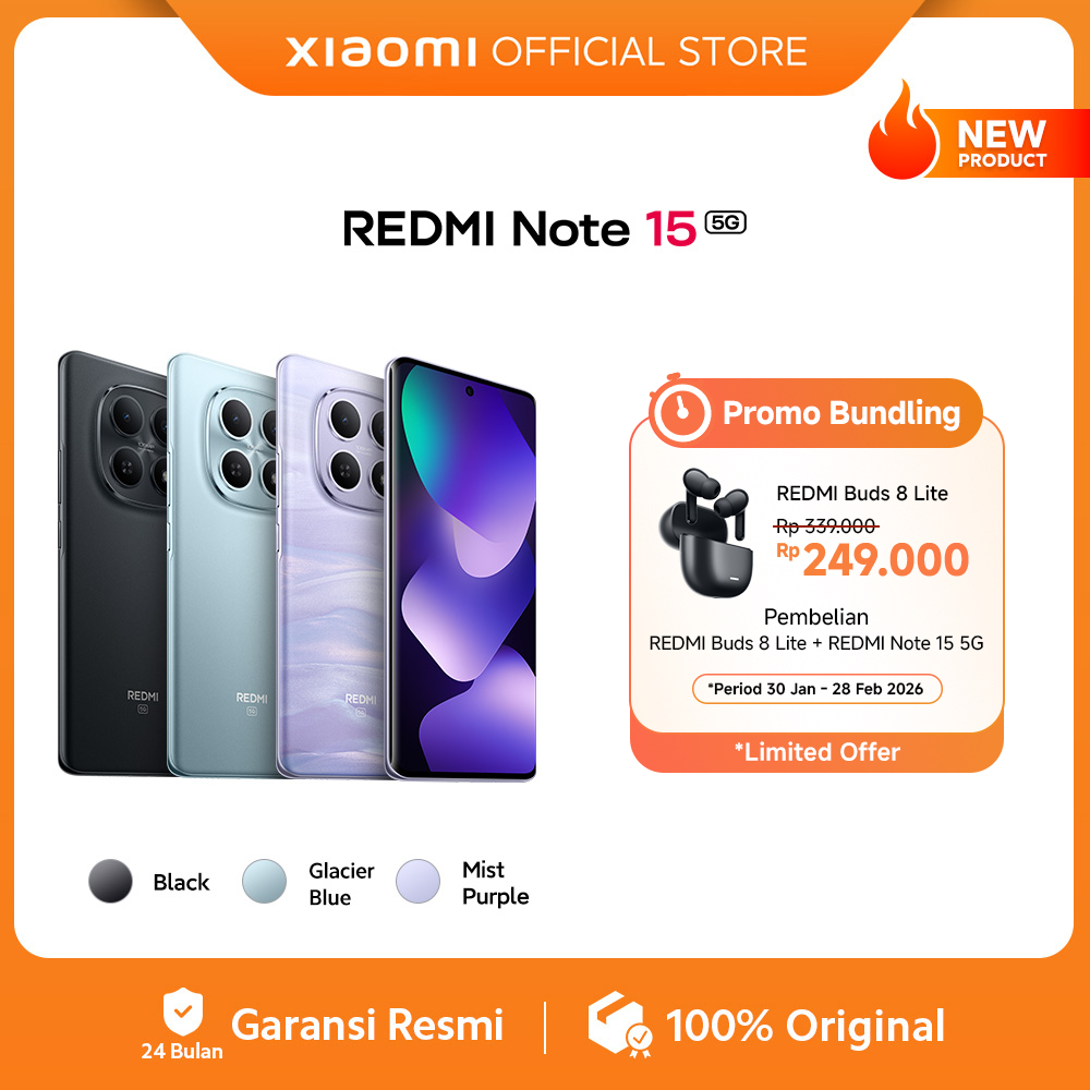 Xiaomi Redmi Note 15 5G (6/128 GB) (8/256 GB) (12/512 GB) | Baterai 5520mAh dengan desain ramping | Kaca layar dengan daya tahan tinggi | IP66 Ketahanan debu dan air | Kamera super jernih 108MP | Layar AMOLED FHD+ 6,77" | NFC [Xiaomi Official Store]