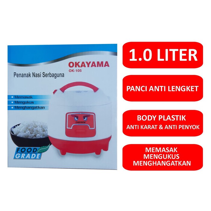Okayama Rice Cooker Penanak Nasi 3 in 1 Food Grade 1.0 Liter OK 105